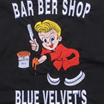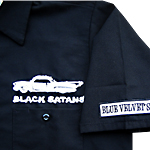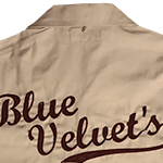チェーン刺繍のボーリングシャツです。フロントに「BLUE VELVET'S」のワッペン付。