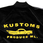 Tシャツでも使われたカスタムカーのデザインです。袖には一本のアイボリーのパイピングを施したチェーン刺繍の別珍スカジャンです。これを着て当時の雰囲気を味わって下さい!