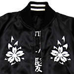 リバーシブルのおもしろさは、ひっくり返す事により1着のスカジャンが2つの表情を持ち、全く違った着こなしを楽しむ事ができます!今年のリバーシブルはタトゥ柄で人気のスワローをチェーン刺繍で表現。反対側はキルティングを施し保温性も抜群!これまた人気の高いFUJIYAMAを刺繍しております!サテンを使用。
