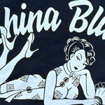 チャイナブルーのスエットです。ディープネイビーとワインのボディに白プリントが映えますね!